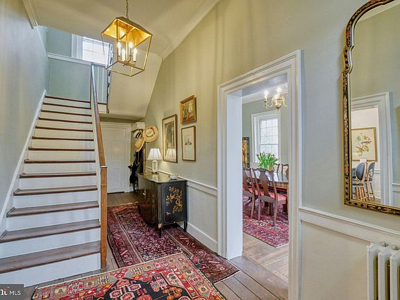 The "Bank House" – Circa 1806 Located in the heart of historic Waterford, "The Bank House" is a stunning example of Federal architecture dating back to 1806. Carefully restored over the years, this home retains its original woodworking, hardware, and wide-plank floors while seamlessly incorporating modern comforts. Stepping into the grand foyer, you'll be welcomed by high ceilings and a beautifully crafted staircase. The modern eat-in kitchen, designed for both style and practicality, opens to a mudroom and back porch, creating a bright and airy living space. The large dining room, complete with a wood-burning fireplace, flows into the elegant paneled library with wood stove is the heart of the home. Upstairs, you'll find five spacious bedrooms and two full baths, offering ample room for family and guests. A full walk-up attic provides generous storage space. The beautifully landscaped lot backs to 144 acres of preserved open land with scenic walking trails and a tranquil creek. Enjoy outdoor living on the large side porch or dine al fresco on the stone patio. The property also includes the original spring house and a charming smokehouse, now serving as a garden shed. Located in western Loudoun, this historic treasure offers a peaceful retreat while remaining convenient to local wineries, breweries, and Leesburg. Dulles Airport is just 25 minutes away, and Washington, D.C., is only 30 miles from your doorstep. A rare opportunity to own a piece of history in the quaint village of Water