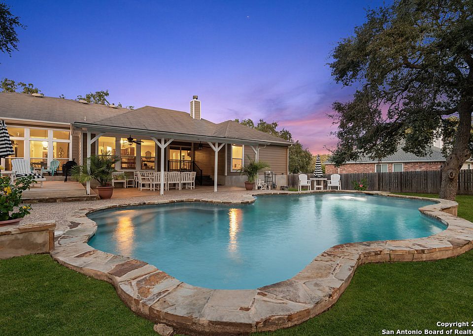Here's your dream home in West Oak Estates - complete with a gorgeous pool, mature oak trees, and over half an acre of space. This one-story residence offers 4 bedrooms, 3 bathrooms, and 3,170 sq. ft. on a .77-acre lot, creating the perfect balance of comfort and room to grow. Step inside to find hardwood flooring, two spacious living areas, and a chef's kitchen with abundant granite counter space, ideal for family living and entertaining. The very large primary suite is a true retreat, with direct access to the pool area and a luxurious bath featuring a separate shower and his & hers closets. Out back, discover your own summer paradise: a large covered patio and a sparkling inground pool surrounded by mature oaks, offering both shade and privacy. With its expansive lot, thoughtful layout, and resort-style outdoor living, this home captures the best of West Oak Estates living.