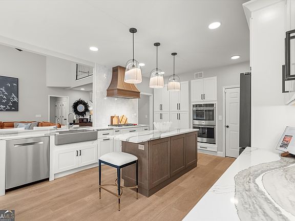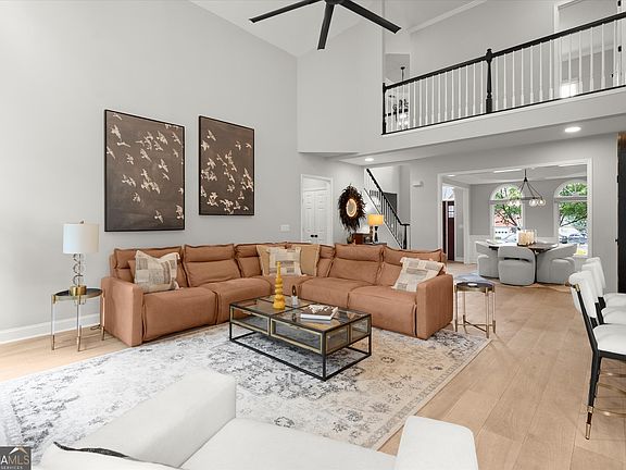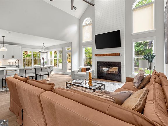 This tastefully renovated home is filled with natural light and elegantly curated finishes. The hub of the home is the gorgeous eat-in kitchen which features a Wolf cooktop with a beautiful custom-made range hood, double ovens, Cambria Quartz countertops, a six foot island, a super quiet Bosch dishwasher, and a breakfast bar. Sunshine streams through the arched windows in the two-story, southern-facing great room. Electric fireplace can be for show or to gently warm when it's chilly. The open floorplan creates easy flow for gathering and entertaining which extends from the formal dining room to the exterior patio. The backyard is secluded and fenced with lush landscaping. A separate living room off the foyer has been fashioned as a gentlemen's drawing room in rich earth hues. Private bedroom and full bath on the main level could be Master on Main or Inlaw Suite. Hand-scraped, wide planked wood flooring throughout. Upstairs, the primary bedroom suite features an adjacent nursery or dressing room and a Hollywood Glam bathroom with a luxurious, standalone tub, a spacious (doorless) walk-in shower, and a private water closet. The Home Office with glass doors opens to the catwalk. Two additional bedrooms enjoy sunset views and share a sleekly updated bathroom. Bonus! Rear stairs were removed to create several additional storage closets. And, there is an attached storage shed behind the two-car garage. The HOA manages the club house, swimming pool and tennis courts situated at the entrance to the neighborhood. Located near all that makes Alpharetta awesome. Walk or ride to Webb Bridge Park and the Greenway. Enjoy Avalon Nights Live at Alpharetta's premier shopping and dining district. Top performing schools include Lake Windward Elementary, Webb Bridge Middle School and acclaimed Alpharetta High School, which offers International Baccalaureate (IB) as well AP courses along with an impressive array of athletic programs and extracurricular activities. A very special HOME in an exceptional community.