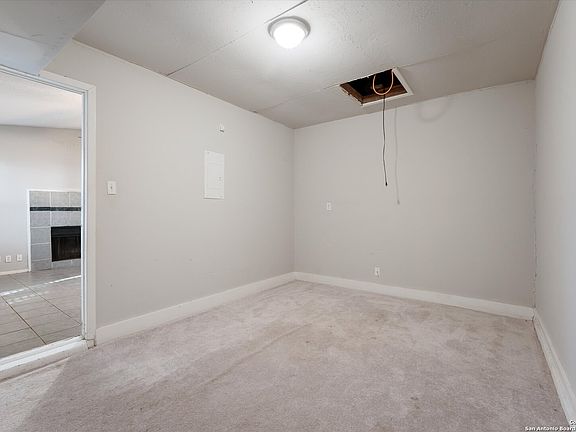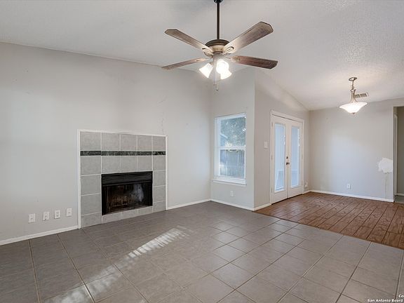 Investor special priced $60K below Bexar County appraisal! This 2-bedroom, 1-bath home includes a converted garage adding a 15x10 bonus room while still offering storage space. With no HOA, you have the freedom to customize the property as you wish. The open floor plan features vaulted ceilings, a spacious living area, separate dining room with a cozy fireplace, galley kitchen, and French doors that open to a private backyard patio. Additional highlights include ceiling fans, a laundry room, level backyard with a privacy fence, mature trees, and a prime location just minutes from major highways and only 20 minutes from Randolph Air Force Base. The home needs some work but offers strong value and potential for a great return on investment.