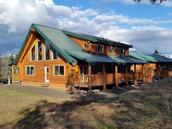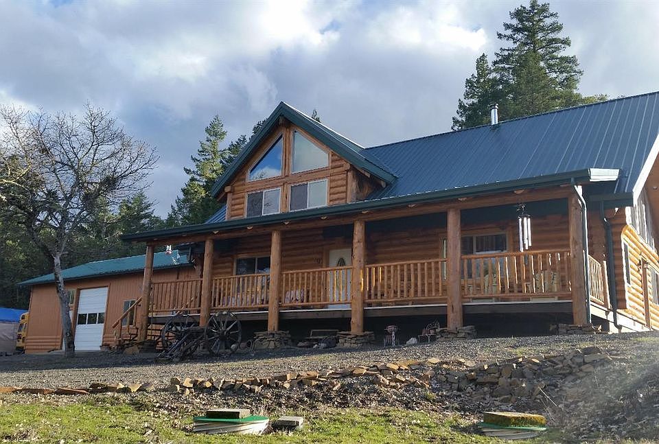 Top of the world views! Stunning log home with exquisite panoramic mountain and valley views on 39.89 acres. 2200 feet in elevation puts you above the fog line. Custom log home built in 2006 and surrounded by BLM. Featuring 3 bedrooms (open loft area with closet), 2 baths, office area, vaulted ceilings, spacious open floor plan, master bedroom and bath on main floor, interior laundry room, certified wood stove and ceiling fans. Bamboo flooring throughout. Huge front and back decks to enjoy the quiet and peaceful setting. Picture windows allow for tons of light and enjoyment of the spectacular views. Huge 24 x 44 shop. There is a studio attached to the shop, equipped with full kitchen, bath and certified Vermont casting wood stove. 4 acres are fenced for livestock. Existing gravel pad in place for future shop or barn structure. 2 - 1500 gallon cisterns. There are so many rare features about this home that you must come see for yourself!