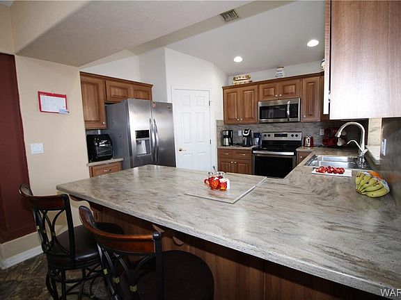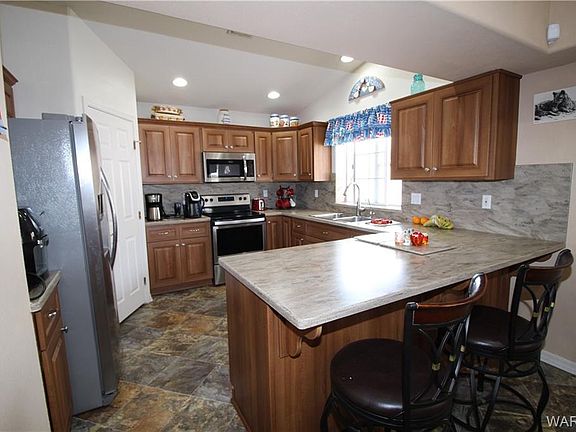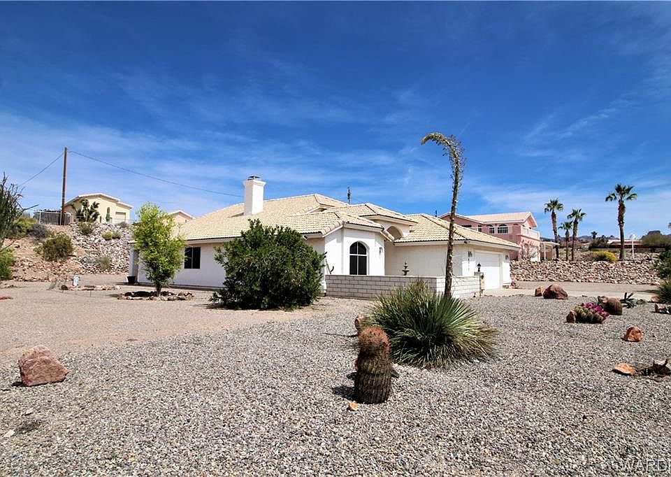 LOVELY move in ready home with incredible views! This home is total electric. This lovely abode boasts spacious rooms, huge master ensuite with a very large walk in closet, brand new garden tub and walk in shower plus its a split floor plan. Door from master suite to back covered patio. Dramatic rock fireplace in living room. Check out the cathedral ceilings and decorator windows. New upgraded vinyl flooring throughout most of home with carpet in bedrooms. Beautiful concrete counter tops and newer appliances in recently updated kitchen. Lovely front court yard as well as covered back patio. Huge over-sized two car garage with plenty of room for longer vehicles. This spacious one half acre lot has room to park all your boats, RVs and toys. Peace and tranquility with beautiful sunsets and views. Stainless refrigerator and newer washer and dryer stay. Enjoy the quail, roadrunners and bunnies that visit this lovely home.