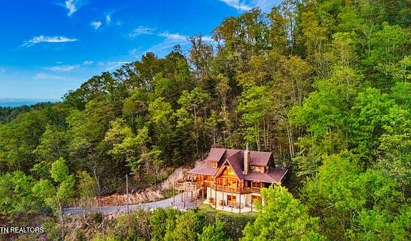 Over 180 degrees of breathtaking beauty from the lap of luxury! This Is Smoky Mountain Paradise! The mountain views are endless from this absolutely stunning custom built cabin beautifully situated on 5 acres! This is the one you've been dreaming about, and your search is done! As you drive up your private gated driveway you will be in awe! This cabin was meticulously crafted by a builder set on creating the perfect mountain retreat. When you step onto the expansive decks you will be left breathless by the views. The deck has an outdoor kitchen complete with stainless steel grills, griddle, oven, and granite countertops too. You can sit on the deck and enjoy a cozy fire in the outdoor fireplace, or sit around the fire pit on the open deck and enjoy the stars. The stunning views from the decks will leave you speechless, and the views looking out over Wears Valley will not disappoint. As you enter the front door you are met with an open great room with soaring ceilings, stack stone fireplace, and spectacular views everywhere. The kitchen boasts lots of cabinets and granite counter tops, with an adjacent dining and bar that provides plenty of space to gather around the kitchen. The beautiful wood tongue-and-grove, and gorgeous wood beams create the perfect blend of elegance with a cozy charm. Also on the main floor you will find the primary suite with French doors leading out to the deck. The primary bathroom is its own sight to see. Complete with a Sauna room, copper Japanese soaking tub, and separate walk in shower, you won't want to leave. There's a huge walk in closet too. You also have an additional half bath that is ideally located on the main floor. As you head upstairs you find a large den with high ceilings and lots of seating space to relax and unwind. This room would also make an ideal gaming area. On this level you have a 2nd primary bedroom with a walk in closet, and a large bathroom with a walk in shower.