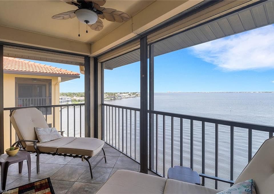 Welcome to this exceptional PENTHOUSE residence, offering over 2,000 square feet of luxury living and breathtaking panoramic river views that truly set it apart. Perfectly positioned on the top floor, this 3-bedroom, 2-bath home combines the comfort of single-family living with the ease and security of condo life. The thoughtfully designed split bedroom floorplan features a spacious primary suite with a large walk-in closet, a generous guest wing, and an oversized laundry room with abundant storage. Electric shutters on the balcony and river-facing windows provide both convenience and peace of mind. Enjoy rare dual parking options with your own private one-car garage plus an additional covered carport. Located just a short walk from beloved Jaycee Riverfront Park, you're perfectly situated to enjoy scenic walking and biking trails, weekend events, and future park enhancements. Cool off in the heated community pool, unwind in beautifully maintained tropical surroundings, and explore the vibrant South Cape—with its shopping, dining, and entertainment just minutes away. Positioned north of Cape Coral Parkway between both bridges, you’ll love the quick access to everything. Best of all? No assessments! The owner has paid them in full, making this an unbeatable opportunity in one of Cape Coral’s most desirable waterfront neighborhoods. Don’t miss your chance to own this rarely available penthouse—schedule your private tour today!
