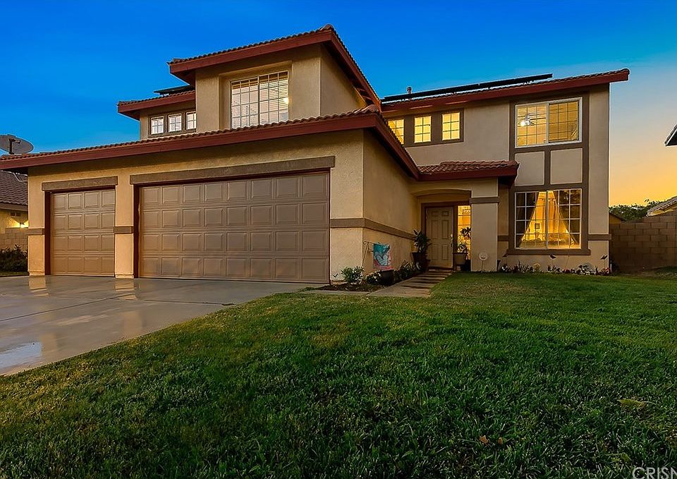 Premium location in West Palmdale located in the Central area of Rancho Vista, Only a few blocks to the Rancho Vista Golf Course. Close to shopping centers and schools. Only a few miles to the Antelope Valley Mall area, where you will find all the major shopping, movie theatre and restaurants. This 4 bedroom 2 ½ bath home as all the bedrooms located upstairs to give you an oversized Family Living Room area. Beautiful Tile Flooring Downstairs and Brand New Carpet Upstairs. Many custom features to make this a one of a kind home. The appliances have all been replaced within this year!! This property even has additional 140 sqft Loft Upstairs, to give you an office, game or a gym area. Solar panels already there to give you those low energy bills for hot summer days! This Property will Not Last long on the Market! Call for your appointment today!!