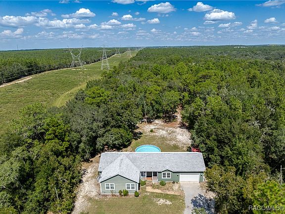 Welcome to 4015 Grover Cleveland Blvd, a rare opportunity to own 6.25 (1323'x206') fully fenced acres in Homosassa, Florida. This property features a 2017 Champion-built modular home with poured concrete stem wall, 2x6 construction, and Hardie board siding for durability and peace of mind. Inside, you'll find four spacious bedrooms and three full baths, including a massive owner's suite measuring 15 by 15 feet, paired with a luxurious 15 by 12 bath complete with soaking tub, walk-in shower, and double vanity. The home offers 2,207 square feet of air-conditioned living space and a two-car garage. A separate family room sits adjacent to the fourth bedroom, ideal for guests or multi-generational living. The chef’s kitchen is outfitted with honey oak cabinets, a tiled backsplash, a breakfast bar, and a formal dining area—perfect for hosting and everyday comfort. All additional bedrooms are generously sized at 14 by 12 feet, offering plenty of room to spread out. Step outside to enjoy a rear deck and an above-ground pool, plus a 12 by 20 shed and an RV carport equipped with a 30-amp breaker and water hookup. The newly installed crushed asphalt driveway adds a polished touch to the property’s entrance. Animal lovers will appreciate the multiple pens and chicken coops, and the property sits next door to county land with direct access to horse trails. Best of all, there’s no HOA, no CDD, and the property is not in a flood zone. You’re just minutes from dining, shopping, and the Suncoast Parkway, making this private retreat both peaceful and practical.