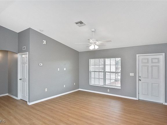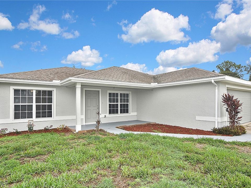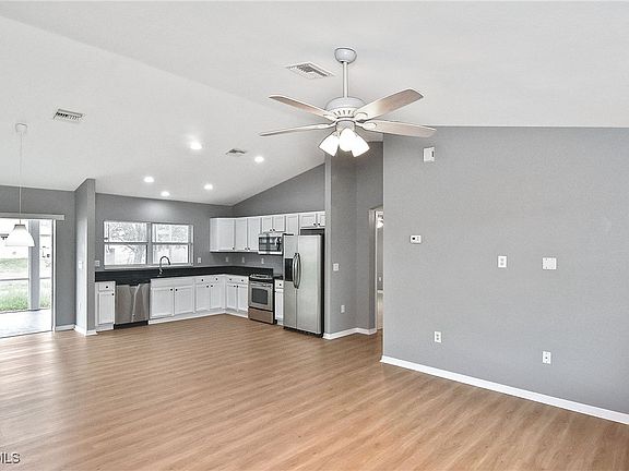 NEW ROOF!! The Seller will give a $5K credit for any full price offer. Welcome to your beautifully updated 3-bedroom, 2-bath single-family home in the heart of Lehigh! Located within minutes of State Rd 82. Freshly painted inside and out, this move-in-ready home features an open-concept layout with vaulted ceilings that create a bright and spacious feel from the living room through to the dining area. The kitchen boasts sleek black granite countertops, crisp white cabinetry, recessed lighting, and all stainless steel appliances — perfect for both everyday living and entertaining. Enjoy brand-new vinyl flooring in the kitchen and living room, with durable tile throughout the remaining areas. Step out back to a large screened-in lanai ideal for relaxing or entertaining, or enjoy your morning coffee on the charming front porch. The spacious backyard, accented by a beautiful oak tree, offers plenty of room for outdoor enjoyment. Additional highlights include a 2-car garage with an attractive epoxy floor, an automatic garage door opener, and great curb appeal. This home checks all the boxes – style, function, and value! AC replaced in Dec 2020, WATER HEATER replaced in March 2024.