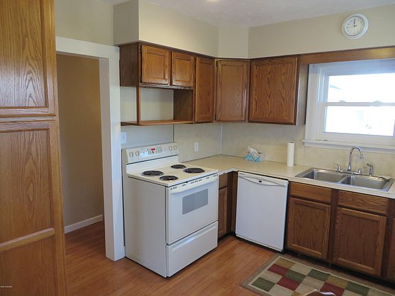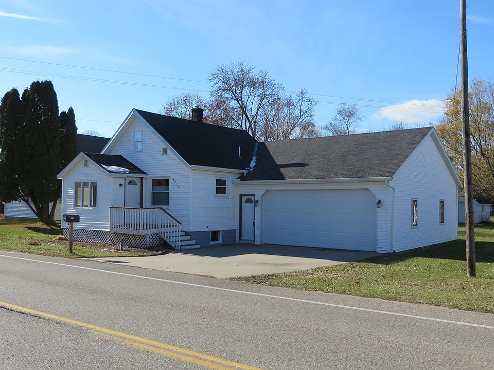 Ready to move in 1 1/2 story, 2 bedroom, 1 bath home. 2 year old furnace, central air , hot water heater, steel exterior doors and garage doors. Newer replacement vinyl windows in home(not in front porch). Original 1 stall garage is move to the back of the property. Newer attached 24 x 30 2 stall garage. Garage has a large garage door on the front and a single garage door out to the back yard. Freshly painted throughout. Newer oak cabinets in the kitchen. Bathroom is also remodeled.