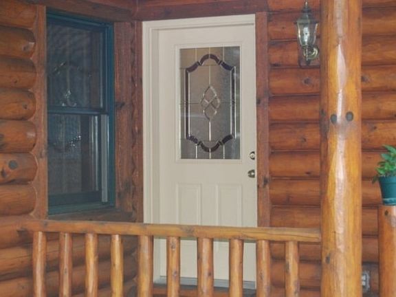 Serenity now! Live in peace and harmony with nature. Quality built around 2004, this log sided home boasts an open floor plan, beautiful stone fireplace, hickory kitchen cabinets, tongue n groove wood ceilings, huge covered deck overlooking 10 acres. 3 bedroom 2.5 bath home, 3 season porch directly off of the master bedroom and also access to the covered deck. Updated carpeting in many rooms and freshly painted.