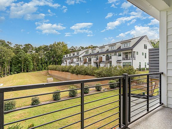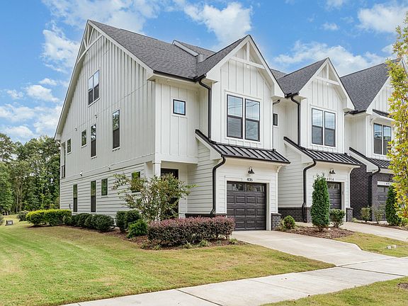 Beautiful End Unit, Luxury Townhome w/ Finished Garage. Offering a Gallery of Designer Upgrades. From Stunning Flooring on Main from Front to Back Door to Include a most Impressive Chef's Kitchen w/ Stacked Cabinets. Waterfall Quartz Island Countertops, Gas Stove SS Appliances. Linear Fireplace w/ Ebony Shiplap & TV Connection & Custom Blinds Throughout ! Primary Suite w/ Balcony for Stunning Views. Rain head Shower, Upgraded Shower with Bench & Glass Door. Two Additional Bedroom Suites and TWO Lofts. So, LOTS of FLEX Space. Large Walk in Attic. UPGRADES GALORE !Common Area with Picnic Table, Benches and Grassy Field. Convenient Location Location Location ! Minutes to Lenovo Center, Crabtree, UNC/Rex Hospital, I40 and Glenwood Avenue to Downtown Raleigh.