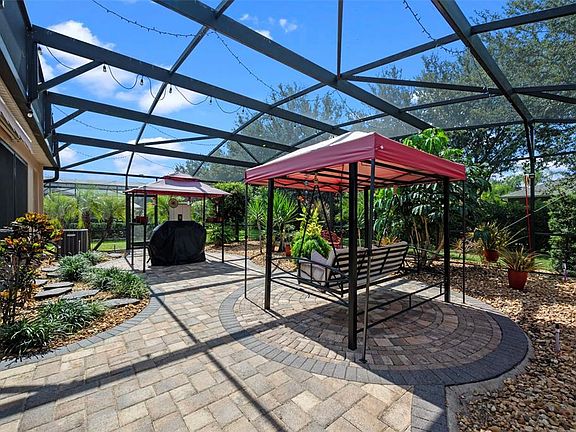 Heritage Hills is a 55 plus community located in beautiful Clermont. The popular Bonita II model features 3 bedrooms with 2 bathrooms and is over 2000 sq. ft with the additional lanai under air! Wait until you see the garden! 1200 sq. ft. of plants, trees, rocks and space to enjoy the outdoors and it is all screened and located on a corner lot. The lot is over .25 acres and showcases landscaping curbing and island with amazing plants! NEW ROOF! NEW INTERIOR PAINT, NEW LANDSCAPING, NEW FLOORING IN 2 BEDROOMS, NEW EXTERIIOR PAINT AND PLANTATION SHUTTERS. The kitchen has an island with granite top and with pullout shelving, breakfast bar, all appliances stay and it is open to the family room. The family room is so spacious with lots of options for decorating and features a tray ceiling! Sliding doors open to the additional under air Florida room with new mini split system. There are shades on all the windows in the Florida room. The view is amazing and a great place to enjoy the outdoors either under air or out on the screened lanai. The laundry room has storage cabinets and the washer and dryer stay! No carpet in this home. Heritage Hills amenities include a heated pool and spa, pickle ball, tennis, basketball, bocce ball, shuffleboard, clubhouse with planned activities, lots of clubs to join, fitness center, art and crafts room, billiard room, card room and ballroom for holding events. Exterior is painted every 6 years and yard maintenance is included in the HOA fee! There is a 5 mile walking trail around the community. Call today for your private showing!