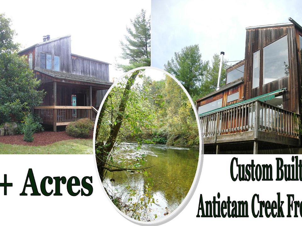 Window to the Woods!Amazing opportunity to own your own piece of heaven!Custom built on 11+ wooded acres w/Antietam Creek frontage.Unique top to bottom-views & privacy you must experience to appreciate!4 BDRM,2 BA redwood home has open plan main level-cozy wood stove,HUGE windows streaming sunlight & views in every direction,solar tile heating,KT FP, loft BDRM/library w/2nd FP & SO much MORE!