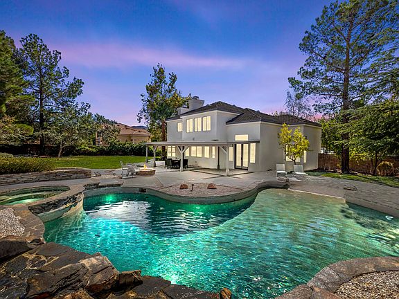 Back on Market ! This stunning 5 bedroom, 3 car garage home sits one of the best neighborhoods of Palmdale in the Rancho Vista Area! An amazing entertainer's dream backyard. Enjoy the backyard year round with the covered patio with firepit, large grass area, and especially the water feature. Best yet, the corner lot provides extra space and privacy. The double door entry, high ceilings, and curved staircase makes a dramatic impression from the minute you enter this home. Tastefully upgraded throughout with neutral designer paint and flooring, there is nothing to do but move in and plan your housewarming party in that gorgeous backyard. With one bedroom and a full bathroom downstairs and the other 5 bedrooms open floor plan. The crisp white kitchen and family room overlook the backyard while the formal living and dining rooms offer another space to gather, entertain, or just relax. The primary suite is large with high ceilings, a cozy fireplace, bright windows, and an attached bathroom with dual sinks vanity, a soaking tub, and walk-in shower. Best yet, This home is steps from parks, schools, and shopping. It's a wonderfully walkable neighborhood and close to freeway access!