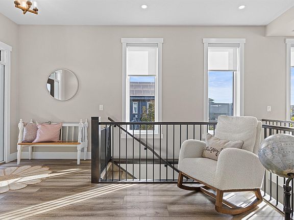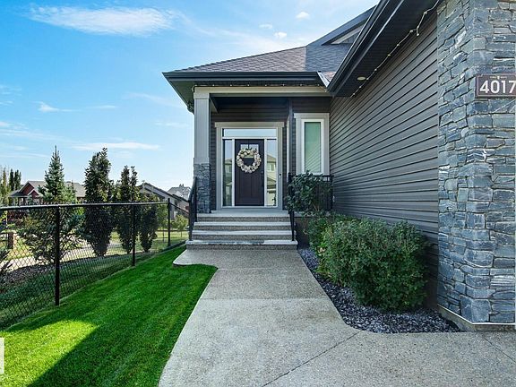 Spectacular WALK-OUT bungalow backing on private greenspace & siding walking trail. This 4 yr old home was masterfully built by AR Homes. The open concept Living/Dining/Kitchen offers soaring 10ft ceilings & is flooded w/ natural light from all the windows from the South & East - not to mention the stunning private views. The exquisite kitchen features large eat-up island, quartz counters, abundance of white cabinetry, undercabinet lighting, showstopper 36" gas range plus huge walk-through pantry with standup freezer & microwave. The main level also boasts a stunning Primary Suite w/ an ensuite anyone can relax in. You can also enjoy the added convenience of access to the laundry room through the walk-through closet plus an additional den. The lower level features in-floor heating, 9ft ceilings, a huge rec room with another gas fireplace plus wetbar, 2 large bedrooms, another full bath & den/flex room. The triple attached garage is heated, has polyaspartic floors, drain & cold water faucet. Shows 10+