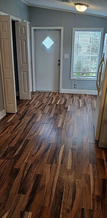 This is a quiet family community called Parkwood Estate. The monthly lot rent is 815. The community won't increase the lot rent more than 10% a year. The property features a screened-in sun porch with outlets outside. The new owner will need to pay a 50 application fee for a background check. Water and trash are included in the lot rent fees. On the edge of Plant City, less than 2 miles from the I-4 on-ramp. There are 2 dedicated parking spots. The house is on the first turn into the community. The master can fit a king. Washer-dryer connection off the kitchen. The property has 3 doors which including one in the back of the property where the creek runs behind the house.