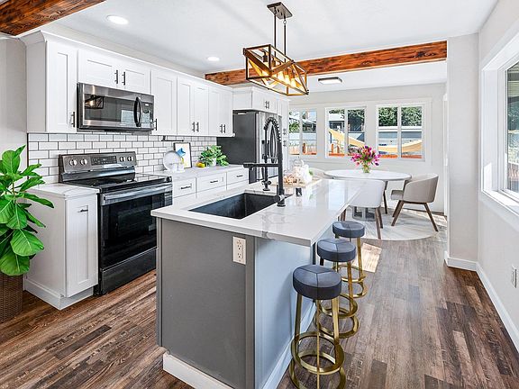 Welcome to this beautifully remodeled home in north Spokane near Minnehaha Park! With nearly 2,000 square feet, this fully finished rancher offers three bedrooms, two bathrooms, and family rooms on both the main floor and in the basement. The home has been completely redone down to the studs with brand new plumbing and electrical, new vinyl windows, new roof and attic insulation, and anew HVAC system including new furnace and AC in 2022. It's almost like buying a new home! You'll love the gorgeous kitchen, with custom cabinets, quartz counters, and sleek stainless steel appliances. The main floor bath features quartz counters, double sinks, and subway tile surround in the shower. Enjoy stylish and durable LVP flooring as well as designer colors and finishes throughout the home. The backyard is fully fenced with a nice wood deck and one car garage. Come check out this amazing home today!