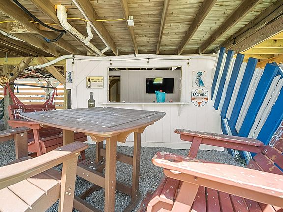 This gorgeous Beachside Bungalow in Palm Beach is currently being used as a successful short term rental and is turn-key ready for its next homeowner. With over 60 five-star reviews this home is being sold with everything you need to succeed. Located within walking distance to the Private Beach, this home is packed full of upgrades. The owners spared no expense enclosing a covered porch and converting attic space to a second bathroom and bedroom last year. This home comes with waterproof LVP flooring, 6 inch baseboards, new appliances, and a brand new AC system throughout the house. The open-concept kitchen has gorgeous granite countertops, soft close cabinets and plenty of storage. There is a downstairs covered bar area, and a hot tub. An enclosed outdoor shower is located downstairs, along with two staircases leading up the expansive deck. All furniture included. A perfect opportunity for a beautiful new beachside home, or a new business.