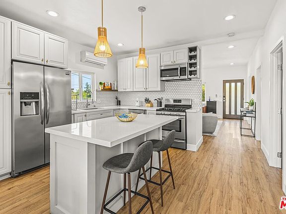 A rare flat lot view home with a full guest house or mother in law suite, perched at the top of the hill and fully remodeled from top to bottom with a designer's touch. Living the hillside dream without the hillside hassle, no wasted space, no steep stairs, just sunshine, skyline, and total vibe. This one of a kind 1908 bungalow sits on a large, flat 6,682 square foot lot where sweeping views meet walkable terrain and easy indoor outdoor flow. The main 2 bedroom 1 bath home features an oversized designer kitchen with stainless steel appliances, in-home laundry, and a dining area, blending curated charm, vintage soul, and elevated finishes all wrapped in a fresh modern feel. Downstairs, a chic 1 bedroom guest house with its own entrance, kitchen, bath, and living space adds about 506 bonus square feet to the 834 square foot main home, ideal for extended family, guests, or creative flex space. Step outside to a backyard that not only serves as a beautiful outdoor retreat but offers plenty of room for additions and expansions for years to come, with a custom built pergola for shaded lounging, a cozy firepit for starlit evenings, an outdoor movie setup for open air screenings, and a 10 foot soaking pool framed by open sky and hillside views. Room to dine alfresco, to linger alfresco, and to host the kind of gatherings that feel effortless. In addition to the beautiful updates, some of the major system upgrades include electrical, plumbing, sewer, and roof. Located in unincorporated Los Angeles County, you are not subject to Los Angeles City rent control or short term rental restrictions. Just minutes to Highland Park, DTLA, and all your favorite Eastside spots. The main home has a strong short term rental history with great reviews and the separate guest house is currently bringing in about $2,200 per month on a short term lease, giving you the flexibility to enjoy it purely as a private retreat or lean into income when it suits you. This is more than a home, it is a private sanctuary, a design statement, and a lifestyle that sets the bar.