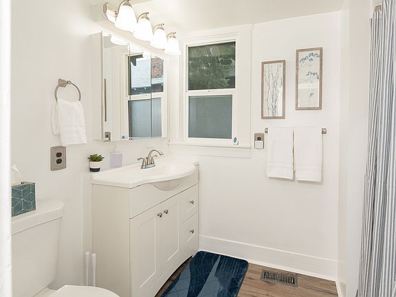 This home has one bathroom that has been renovated with a full size tub and shower and is conveniently equipped with a hotel style wall mounted shampoo, conditioner and body wash dispenser.