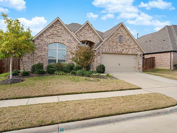 Welcome to this beautifully appointed 4-bedroom, 3-bathroom home offering over 2,600 sq ft of modern comfort and thoughtful design. From the moment you arrive, you’ll be impressed by the charming drive-up appeal, lush landscaping, and a spacious two-car garage. Step inside to an inviting entryway with soaring ceilings and abundant natural light, setting the tone for the home’s bright and open feel. A separate dining room featuring elegant lighting provides the perfect setting for gatherings, while a versatile glass-enclosed flex space offers endless possibilities—home office, playroom, or additional lounge area. The heart of the home is the expansive open-concept living and kitchen area, ideal for everyday living and entertaining. The kitchen boasts white quartz counters, stainless steel appliances, oversized drawers perfect for pots and pans, a large island, and stylish pendant lighting—a true chef’s delight. Retreat to the primary suite with high ceilings and space for a cozy sitting area, along with a luxurious ensuite featuring a deep soaking tub, separate shower, dual sinks and a built in desk. Additional bedrooms and bathrooms are thoughtfully designed to provide comfort and privacy for family or guests. Step out back to enjoy the oversized covered patio and large backyard, an ideal space for outdoor dining, play, or relaxing under the Texas sky.
