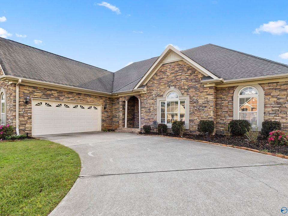 Stunning full-stone home in The Farm subdivision offering over 3,000 sqft of living space! This 4-bedroom, 3-bath home features a spacious open layout with elegant black marble floors, soaring ceilings, and a cozy fireplace in the great room. The gourmet kitchen showcases custom cabinetry, granite countertops, and a center island perfect for entertaining. Enjoy a bright sunroom ideal for a home gym or relaxation, plus a large upstairs bonus room providing flexible space for guests or recreation. With its beautifully maintained exterior and prime Decatur location, this home offers comfort, style, and convenience all in one.