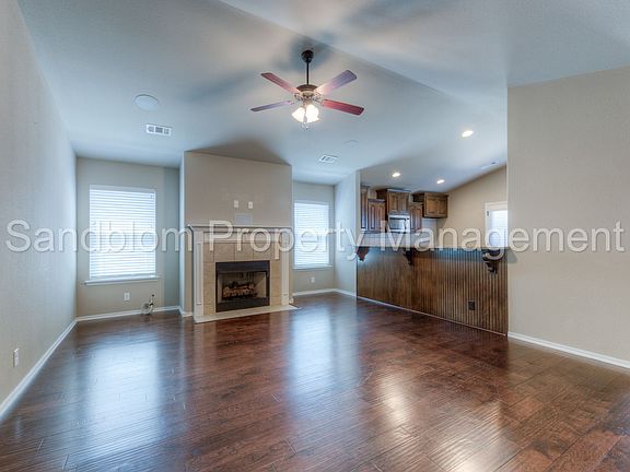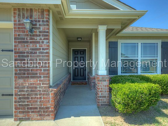 Lovely 4 Bedroom, 2 1/2 Bath, 2 Car Garage home in Jenks Schools. Spacious living area with fireplace. Open concept floor plan. Eat in kitchen with granite countertops, gas range, and pantry storage. Real hardwood floors in the living spaces and brand new carpet in all four bedrooms. Primary suite includes a large relaxing tub, separate shower, dual vanities, and walk-in closet. Backyard features covered patio and privacy fence. Neighborhood amenities including pool, playground, and trails. $1845/month + $1845/security deposit. No pets.