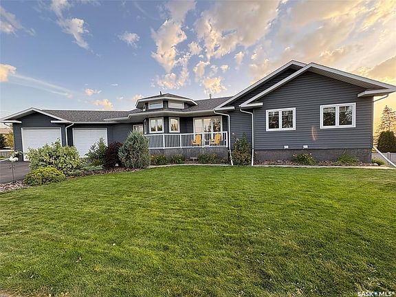 Welcome to Edam, Saskatchewan! A welcoming and well-kept community known for its pride of ownership and small-town hospitality. Residents enjoy a K–12 school, community rink, parks, local shops, and annual events that bring everyone together. Just a short drive from North Battleford, Edam offers a peaceful lifestyle with an easy commute to city amenities. This uniquely beautiful and spacious home is perfectly situated at the end of a quiet cul-de-sac in the friendly community of Edam. The sprawling backyard borders open greenspace, giving you the feeling of acreage living while enjoying all the conveniences of town. Inside, the open-concept layout features sleek décor, vaulted ceilings, and large windows that flood the space with natural light. The modern kitchen offers dark cabinetry, stainless steel appliances, and a large island ideal for family gatherings. With six generous bedrooms, main floor laundry, and plenty of storage throughout, this home is perfect for a growing family or for hosting guests. The primary suite includes a walk-in closet and a relaxing ensuite complete with a jetted tub and serene view. Step onto the 30’x17’ upper deck—accessible from both the living room and primary bedroom—and enjoy panoramic views of the beautifully landscaped yard below. The walkout basement adds even more living space, featuring a cozy family room, three additional bedrooms, a bonus room, and access to a covered 42’x17’ concrete patio leading to the hot tub and firepit area. The fully fenced yard is truly a retreat, complete with a garden, shed, play structure, and lush lawn surrounded by mature trees. The 33’x37’ heated garage provides abundant space for vehicles, storage, and hobbies. Some furniture will be included. It truly is a dream home that you need to see. Call or text for a viewing.
