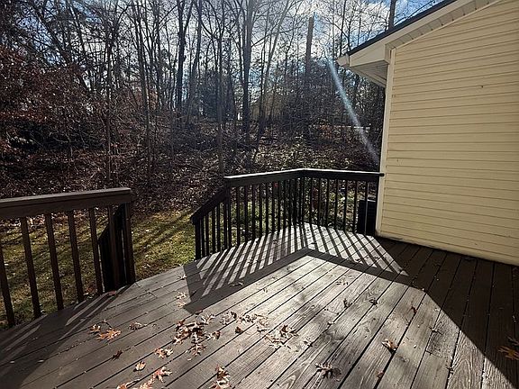Half bathLarge deckPrivate wooded backyardBreakfast nookLaundry on main levelExterior storage