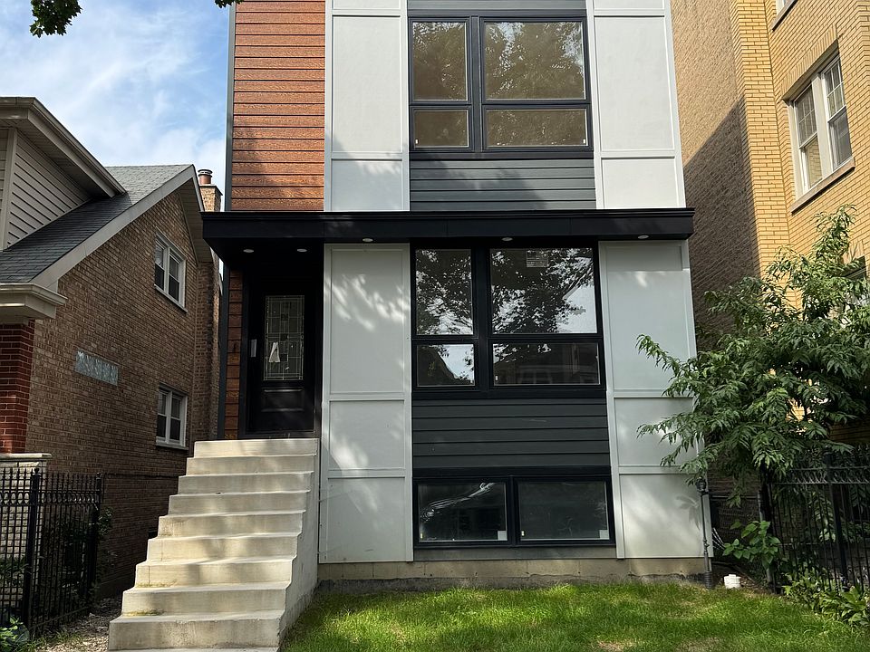 New construction! Settle into our outstanding luxury single family in the heart of leafy Irving Park, Three stories, Five generous bedrooms, Exceptional approx 4000 sf layout includes soaring ceilings on all levels including fully finished basement, White oak flooring throughout, Two dedicated laundry rooms, Dual zone HVAC, Walk out roof deck. Our chef quality kitchen is ideal for entertaining, equipped with top of the line Bosch appliances, Top of the line gas oven with separate wall oven, wine fridge, Expansive island with bar seating, Custom walnut look slim shaker cabinetry, Striking quartz countertops, Walk-in pantry and adjacent butler cabinet with separate sink and beverage fridge. Adjoining family room features a gas fireplace and separate dedicated dining space. Basement has expansive ceiling height, dedicated family room, full bath and laundry room, Spacious primary bedroom features two walk-in closets and stunning master bath with French doors, walk in shower and designer finishes; Exceptional character and quality steps to Horner Park. Tree-lined pocket adjacent to Horner Park, Lincoln Square, North Center.