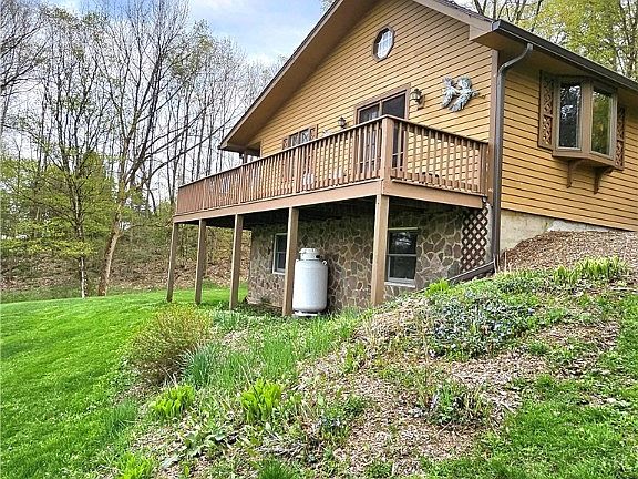 Escape to the countryside to this beautifully charming two-bedroom ranch with scenic views nestled in Truxton. Just a short drive from Tinker Falls, popular ski resorts, snowmobile trails, and much more. The square footage of 700 sq ft doesn't include the finished basement. This home offers the perfect blend of relaxation and recreation. Enjoy the stunning panoramic views from the partial wrap-around deck that’s ideal for morning coffee or unwinding after a long day. The fully finished walk-out basement provides a versatile space that could serve as a family room, home office, recreation area, or even possibly a third bedroom. Additional features include a spacious attached one-car garage and a second detached garage, perfect for extra storage or a workshop. With a little personal touch, this home can easily become your perfect country retreat!