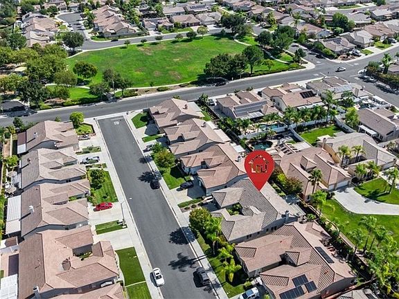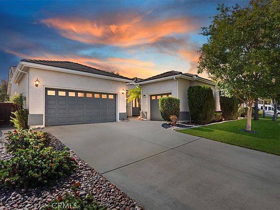 Welcome to this stunning single-story home in the highly desirable Clarendon Hills community—an exclusive neighborhood made up entirely of single-story residences, offering unmatched privacy and charm. Ideally located in the heart of Murrieta, this 2,701 sq. ft. home combines spacious design, thoughtful upgrades, and a rare dual-master layout. From the moment you arrive, you’ll be greeted by an inviting courtyard entry accented with brick paver trim. Inside, you’ll find brand-new interior paint just completed in a crisp, timeless white, creating a bright and welcoming atmosphere. The expansive kitchen features modern white cabinetry, a massive island, engineered quartz countertops, and a large walk-in pantry. A built-in desk area offers convenience, and the kitchen opens to the family room highlighted by a cozy fireplace. The laundry room includes a sink and cabinetry, and the washer and dryer are included. The primary suite boasts an upgraded bath with engineered quartz counters, shower and tub surround, and a massive walk-in closet. On the opposite side of the home, a second oversized bedroom with en-suite bath and direct access to the private single-car garage creates an ideal setup for multi-generational living, a guest suite, or a home office. Two additional bedrooms and another full bathroom provide flexibility for families of all sizes. Crown molding in a main living area and ceiling fans add comfort and style. Parking and storage are abundant with a two-car garage featuring built-in cabinets plus a separate single-car garage with its own entry. Step outside to the private backyard, designed for both relaxation and gatherings. Extensive hardscape with pebble stone flooring, seating walls with brick caps, and a covered patio set the stage for enjoying Southern California’s year-round sunshine. Landscaping includes vibrant rose bushes and fruit trees for added charm. Best of all, beautiful Vintage Reserve Park is just three houses down, making outdoor activities easily accessible. This home is also close to the Temecula Promenade Mall, dining, and entertainment, with Temecula’s award-winning wineries and Pechanga Resort & Casino only a short drive away. With a low tax rate, low HOA, and the rare appeal of being in an all single-story neighborhood, this Clarendon Hills home is a true find in Murrieta. Don’t miss the chance to make it your own!