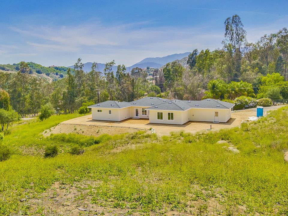 Move-in just in time for the Holidays to this Brand New single story home on 4 Acres of Horse Property near riding trails, wineries, golf courses and fishing. Enter through double dual-pane glass doors into an open concept living area that leads you to a private exterior courtyard separating the master suite from secondary bedrooms. Private courtyard provides potential outdoor living and dining area. Gorgeous hillside and distant sunrise and sunset views from nearly every window. Builder took very great care in making sure every detail was followed. Home has many functional upgrades that will provide both cost savings and time savings when it comes to living in the home year after year. Everything from septic system, to power supply is brand new on property. All certifications are available and will be provided upon request. Highlighted items include the following: Hardi Plank cement board siding, custom Sherwin Williams paint, Acacia hardwood flooring, all Kohler plumbing fixtures and high efficiency dual flush toilets(great for septic), Stainless Steel appliances, more details to follow. Location details: Unincorporated area of San Diego County, in the valley next to De Luz Heights, agricultural zoning for avocados, citrus, hops, grapes etc., walking distance to Ross Lake for fishing, school bus stop less than 1/2 mile away, San Diego County Fire Station 16 only 1.5 miles away, 15 minutes from Fallbrook, 20 minutes from downtown Temecula.