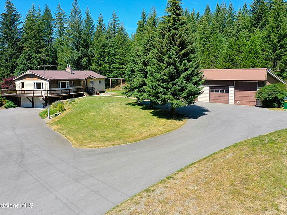 INCREDIBLE VALUE! Well below appraisal which came in at $650,000 in Sept. 2022. Come sit on the deck and listen to the gentle breeze singing through the trees. This peaceful and desirable setting offers plenty of space to enjoy living both inside and out. The well built & meticulously maintained home offers peace-of-mind in the integrity of the structure. It's beautifully crafted one-of-a-kind white granite Montana Rock large fireplace sets off the living room. From the dining room table views of the rose gardens and landscaping can be enjoyed. The kitchen boasts Corian countertops, tiled backsplash, newer flattop convection range/oven, polished floors, & deck access. There are many fruit trees, hazelnut tree, roses, & a large deer-fenced organic garden. Mature landscaping is watered by the sprinkler system. A paved driveway plus an additional extra large RV parking area for two RV's, offers plenty of room for you and your guest's Boats, Cars, RV's, Toys, or Recreation. This property has a two bay attached garage AND a three bay RV detached garage with a fully insulated shop space almost the size of another garage bay. Second level storage area is above the shop. The detached garage is built on a concrete foundation with concrete flooring. Both the home and detached garage have steel siding with roofing made from steel as well for added fire protection. This home is SUPER CLEAN & move in ready.