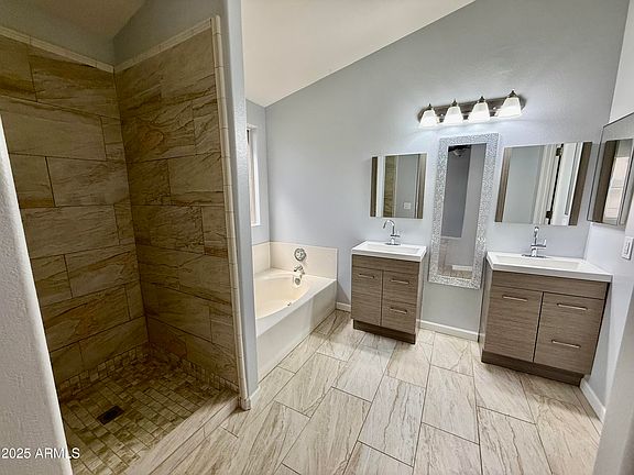 Bright spacious kitchenPrimary suiteRecently remodeled guest bathSpa-like retreatRelaxing soaking tubDual vanitiesInviting family room