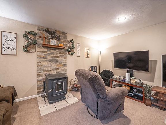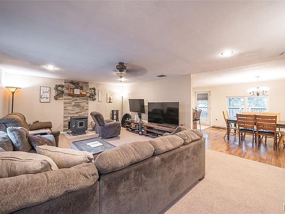 Charming 4-bedroom, 2-bath home nestled on a half-acre lot, offering the perfect combination of comfort, style, and functional living space. The main living areas feature durable laminate & carpet flooring, while the bedrooms are carpeted for added warmth and coziness. The living room is centered around a pellet stove, providing both warmth and a welcoming atmosphere for family gatherings or quiet evenings at home. The spacious dining area flows seamlessly into the kitchen, making meal prep and entertaining effortless. The primary suite serves as a private retreat, complete with an ensuite bathroom and a generous walk-in closet. Additional bedrooms are well-sized, offering flexibility for family, guests, or a home office. Step outside to an oversized back deck, ideal for entertaining, relaxing, or enjoying morning coffee while overlooking the expansive yard. A convenient shed adds extra storage space for tools, equipment, or outdoor hobbies. This home combines everyday convenience with plenty of outdoor space to enjoy, making it perfect for families, those who love to entertain, or anyone seeking a comfortable, move-in-ready property in a peaceful setting.