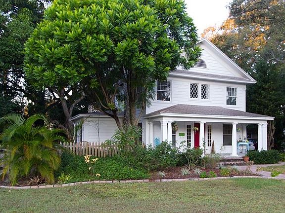 Historic charm in sought after River District neighborhood of Bradenton. This 3 bedroom / 2 bath home built in 1912 features authentic hardwood floors, original wood-burning limestone fireplace and an abundance of windows that flood the home with natural light. Covered porch, built in cabinets, claw foot tub, and eight inch baseboards add to the unique personality of this home. Kitchen appliances have been updated with natural gas range and stainless steel finish throughout. Natural gas tank-less heater and washer dryer hook-ups. Plentiful storage in the walk-in attic space and a detached shed with electricity adds additional storage and a simple workshop. Large fenced in yard with mango and avocado trees with mature landscaping compliments a spacious 500 sq. ft. composite deck with a natural gas hook-up for an outdoor kitchen/grill area. An additional 200 sq.f. paver stone patio makes this the perfect natural retreat or entertaining spot for your guests. Property conveniently located to downtown, Riverwalk, Gulf Beaches and just a short stroll down the sidewalk lined street to the beautiful Manatee River.