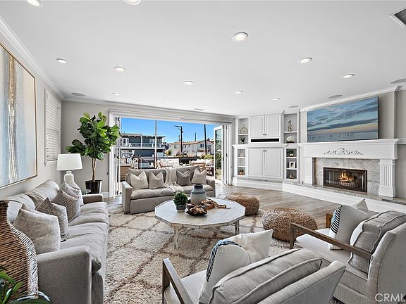 Premier waterfront residence with a dock nestled in the exclusive Newport Island community, within the Newport Peninsula. This home epitomizes indoor-outdoor coastal living, featuring a private boat dock accommodating up to two 30-foot vessels, perfect for boating and water enthusiasts. Upon entering, you are greeted by 9-foot high ceilings and crown molding that enhance the spacious feel of the home. The open-concept living area features floor-to-ceiling accordion doors off the living room that seamlessly blend indoor and outdoor spaces, leading to a deck right on the bay. Enjoy cozy evenings with fireplaces in both the living room and the primary bedroom. The chef’s kitchen is a dream, equipped with a six-burner stove, newer refrigerator and dishwasher, elegant granite countertops, with walk-in pantry. Recent upgrades include fresh exterior paint and new windows, ensuring a modern and energy-efficient living experience with the added benefit of solar panels. This 3-bedroom, 3-bathroom home has generous bay views and a luxury retreat atmosphere year-round. The spacious master suite includes a fireplace and custom built-ins, creating a warm and inviting space to unwind. Live in one of Orange County’s most exclusive areas with the convenience of quick access to the beach, boardwalk, Lido Marina Village, with an array of cafes, restaurants and grocery nearby. Experience island living at its finest, welcome to 402 38th St!