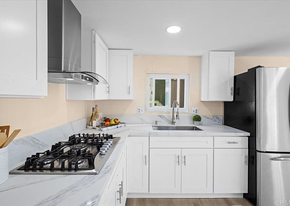 JUST REDUCED! Lowest-priced mobile home in the community — schedule your showing today! Welcome to your new home in the desirable ALL-AGE gated community of Summit Ridge Resort. This beautifully renovated 1 bedroom, 1 bathroom manufactured home offers 516 Sqft of modern living with recent upgrades throughout. The open and spacious floor plan is filled with natural light, creating a warm and inviting atmosphere. The kitchen has been completely updated with new cabinets, quartz countertops, stainless steel gas cooktop, range hood, sink, and fixtures. Additional improvements include brand-new windows, new flooring, recessed lighting, fresh paint inside and out, and a new ceiling in the living and kitchen areas. The bathroom has been upgraded with a new vanity cabinet and modern tile finishes. Convenient features include a stackable laundry area and a 2-car carport for medium-sized vehicles. The Summit Ridge Resort community offers fantastic amenities including two sparkling pools, multiple laundry facilities, a playground, and secure gated access. With low space rent of $990/month and a location close to major freeways, excellent schools, shopping, and downtown San Diego, this home provides both comfort and convenience. Don’t miss out on this incredible opportunity to own in San Diego at an affordable price!