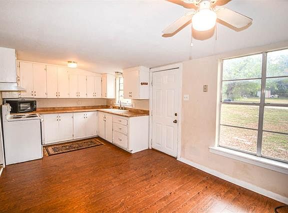 Adorable 2 bedroom 1 bath home located on a spacious corner lot! This charming home features tall ceilings, open kitchen and dining area, and large utility room. It has roomy closets and storage space available inside and out. You can make this little home your small town getaway and enjoy the quiet evenings on your covered porch. Owner Financing is available.