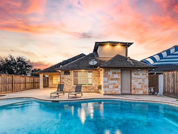 Beautifully crafted, custom-built corner lot home offering 5 bedrooms, 4 baths, and a sparkling heated pool/spa perfect for entertaining. The first floor showcases an open living, dining & kitchen space with crown molding, travertine floors, and a laundry room with custom cabinetry. Downstairs includes a private ensuite plus 3 bedrooms with a shared bath. A single private entry at the rear leads to a split-level primary retreat with sitting/flex space, spa-style bath, and a huge custom walk-in closet with built-ins. Outdoors boasts covered patios, a spacious yard, and an extended covered carport with lighting offering convenience and versatility.