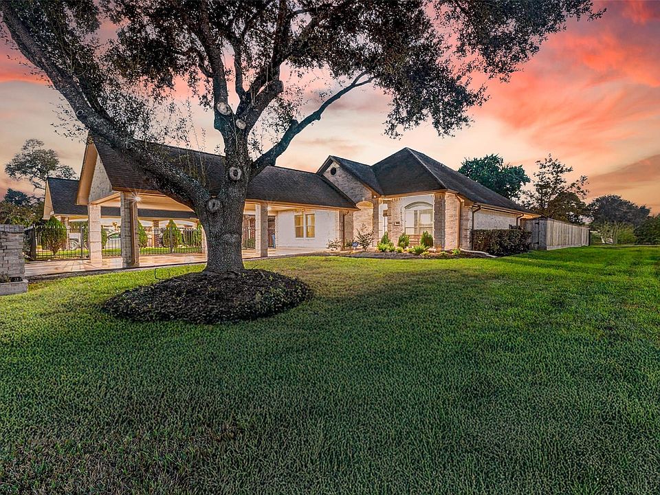 Spacious yardTravertine floorsCovered patiosCorner lotCrown moldingSpa-style bathCustom cabinetry
