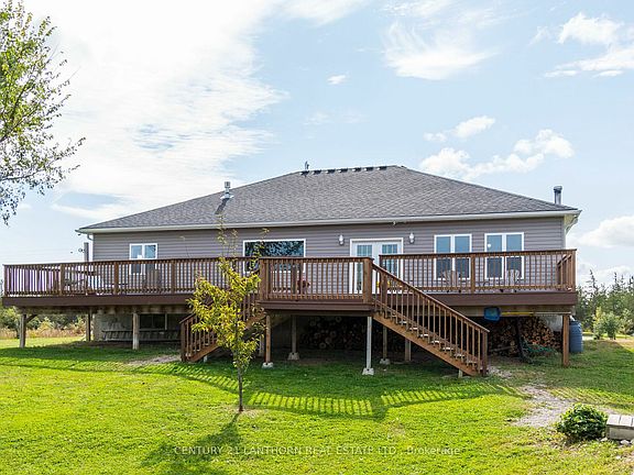 5+ Acres in the County. Minutes to all amenities. Custom built raised bungalow over 2000 sq ft finished space. 9ft ceilings in upper & lower area. 3+3 Bedrooms and 3 bathrooms. Open concept main floor, large family style kitchen with gleaming quartz countertops, maple cabinets, convenient island with seating area, plus a butler pantry. French doors open to a large deck overlooking wooded area and pond with waterfall for the kids to play in. Main floor laundry with access to the double car garage. 3/4" hand scraped oak flooring throughout main floor, open concept living room with fireplace for cozy winter evenings. Lower level has an additional L-shape, 6th bedroom (15', 41'x9'8") storge room (11'8"x10'1") & freezer room (8'5"x8'5"). The 21'6x21'6" garage has both hot and cold water an outlet for EV charger & one for welding. Combination wood/gas furnace plus ICF foundation. This is an exceptional property to raise a family, for a gardener or the craftsman in the family.
