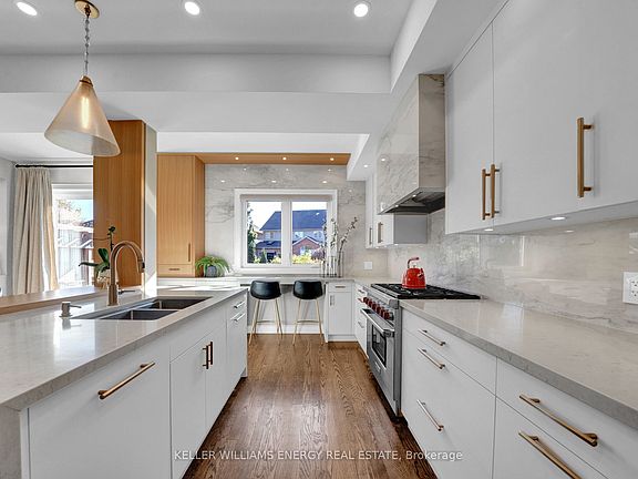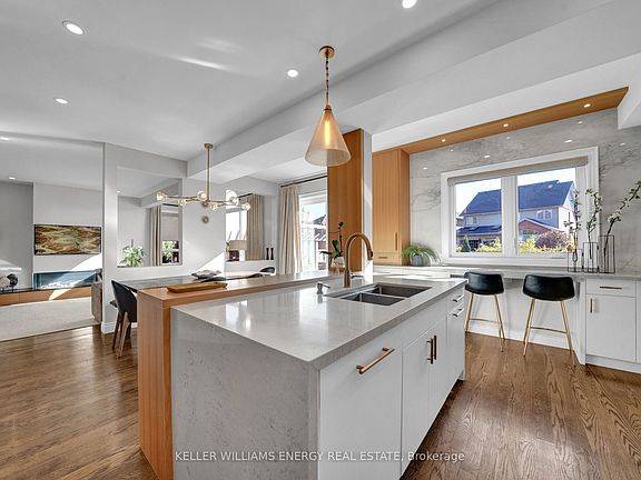 Larger than it looks in Kedron Park. Extensive updates throughout, with over 3700 sq' of living space, this turn-key executive home offers an exceptional mix of comfort, quality, and style in every corner. The main floor is bright and spacious with 9' smooth ceilings, hardwood flooring, the family room boasts a sleek linear gas fireplace that creates a welcoming, relaxed atmosphere. With the kitchen the star of the show, this home features custom cabinetry, premium built-in appliances, and waterfall quartz counters. With ample workspace for cooking and gatherings, it flows seamlessly into the dining and living areas, making it effortless to spend time with family or friends, preparing dinner or catching up at the island. Step outside and you'll immediately appreciate the backyard, complete with a saltwater pool (all shallow), putting green, gas fireplace, and outdoor television, an ideal space to relax or entertain. The front yard is fully landscaped with a charming sitting area, and the absence of a sidewalk means less snow shovelling and allows for parking for up to four vehicles. Upstairs, the primary suite is a true retreat with two separate walk-in closets and a stunning ensuite bathroom. The other bedrooms offer generous space, double-sized closets, natural light, and quality window treatments that add a touch of sophistication. The fully finished lower level provides a large recreation area perfect for movie nights, workouts, sports on the big screen, or giving teenagers their own space. It also includes a fifth bedroom and a full bathroom with heated floors. Every detail has been thoughtfully designed for comfort and function. Located close to excellent schools, parks, a golf course, and everyday amenities, this home delivers style, convenience, and effortless living. *Ask your agent for the Attachment of additional features*
