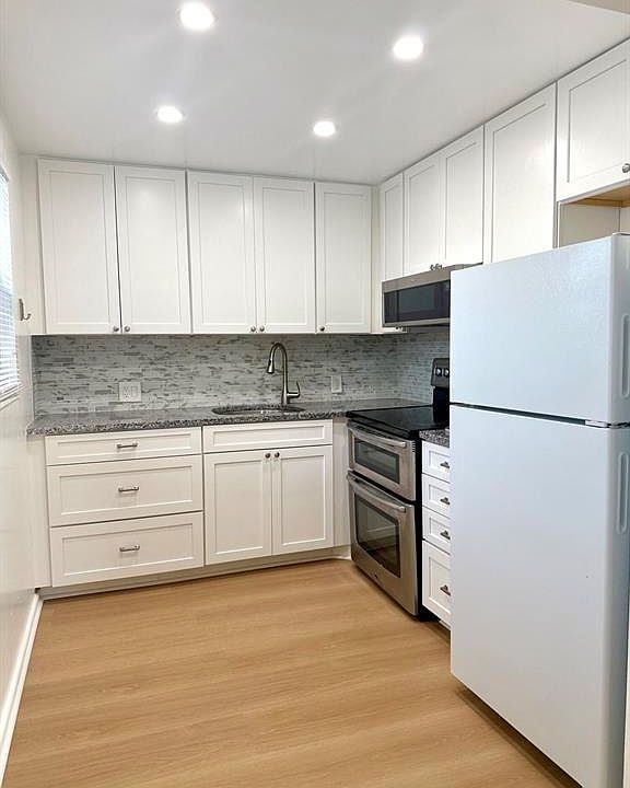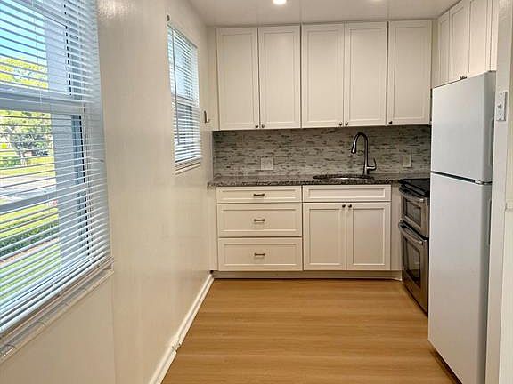 Lake viewsRenovated kitchenLarge white cabinetsGranite countertopsPartial impact windows
