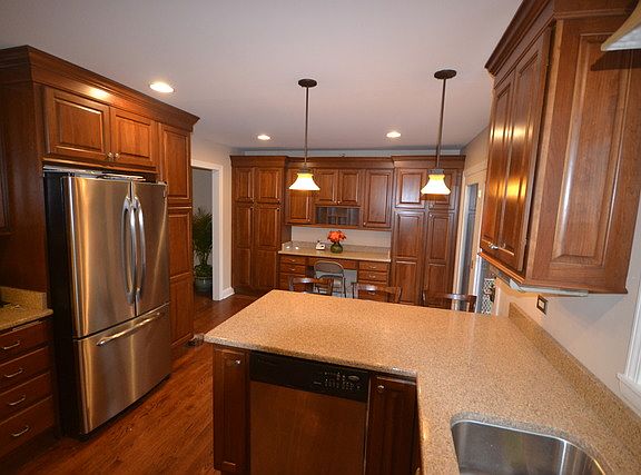 Award winning Schools.. Award winning Home! Enjoy beautiful upgrades throughout! Gorgeous kitchen w/Granite breakfast bar,pantry,Stainless Steel appliances,Upgraded RP cabinets w/crown,designer lighting& hardwood floors.Spectacular custom built-ins in dining room w/hardwood & sliders to fabulous deck overlooking fenced yard! Relax on oversize deck!Spacious Finished Lower Level w/slate floors, full bath & 4th bedroom.