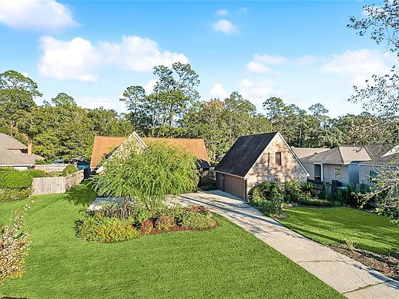 Welcome to convenient and quiet Slidell living! As you approach the entrance, you'll fall in love with your mini courtyard and front porch with a comfortable bench to relax on. Once you enter, the foyer will lead you to the open living area with cathedral ceilings and French doors opening up to the back yard. At just under 2,000 square feet, this home features three bedrooms, including a large primary bedroom and en suite bathroom. The secondary bedrooms are sizeable as well, with a shared full bathroom in the hallway. The spacious laundry and utility room is conveniently located by the bedrooms to make things a little easier. The back porch is massive and covered, great for the morning coffees, afternoon crawfish boils, or evening glasses of wine. The yard is truly a gardener's paradise, with native flora and various types of plants, flowers, and trees throughout the property. Store all of your garden goodies in the detatched 2-car garage, or make it a workshop space if that's more your style. All appliances will remain. This home is ready for you to make it your own. Schedule your appointment to view today!