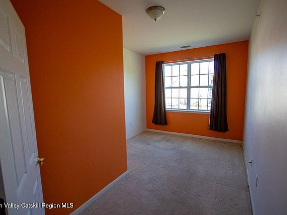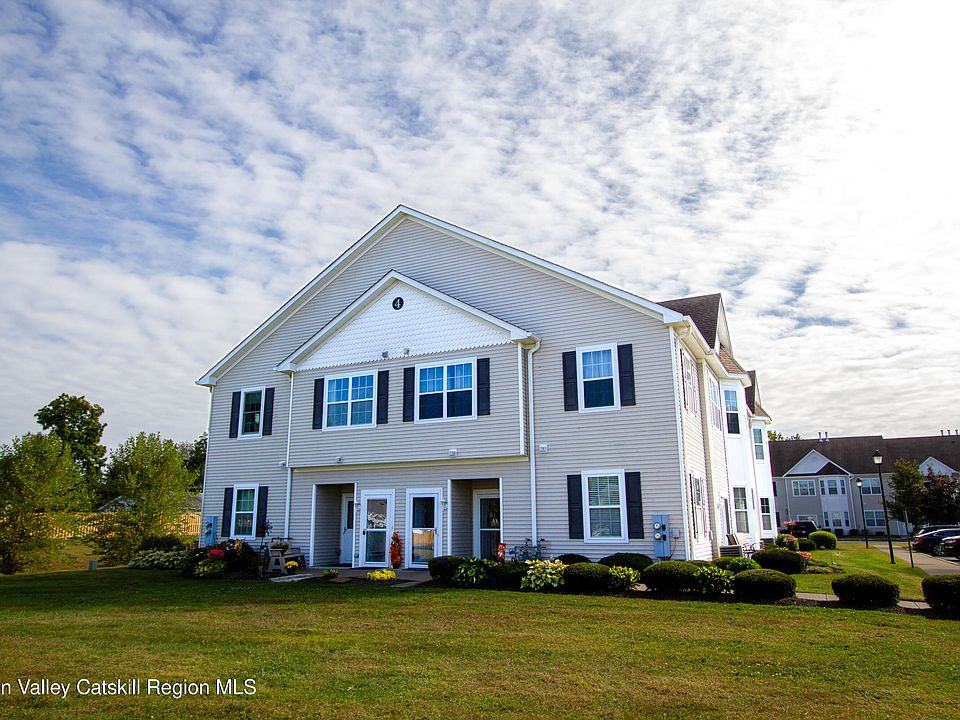 This bright and spacious upper-level unit was originally the model home for Building 4 and offers thoughtful upgrades throughout. With two bedrooms plus an additional den, there is plenty of flexibility for a home office, guest space, or cozy reading nook. The addition den is enhanced with newer Andersen windows installed within the last three years, bringing in wonderful natural light. The primary suite features a large walk-in closet and an ensuite bath with granite counters, while the second full bath also includes a granite vanity. The open floor plan creates a natural flow from the kitchen to the dining and living areas, where large windows overlook the greenery in back, providing a sense of privacy. The kitchen is equipped with GE stainless steel appliances, granite countertops, a breakfast bar, and ample cabinetry. A new hot water tank was installed in September 2025, and a stackable washer and dryer are conveniently located just off the kitchen. Parking is located just steps from the front entrance. Residents of The Commons enjoy access to the clubhouse, which includes a kitchen, fireplace, gym, and outdoor playground for gatherings and recreation. The HOA fee of 300 per month covers landscaping, trash removal, snow plowing, and use of the clubhouse, offering a low-maintenance lifestyle in a desirable location close to both Saugerties and Kingston.