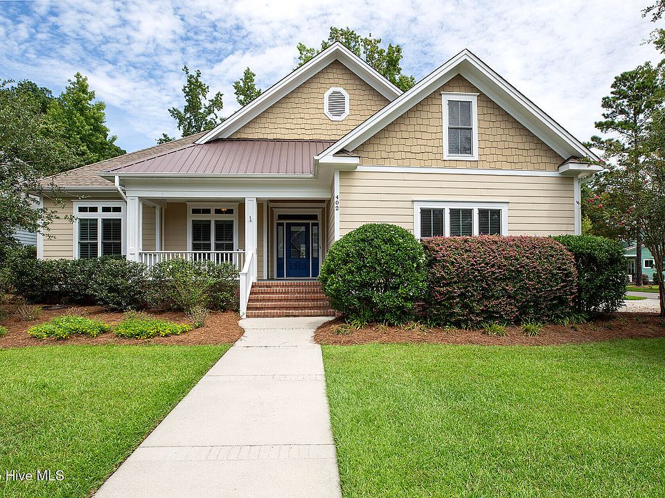 Welcome to 402 Cornubia Drive, a beautifully maintained residence located in one of Wilmington's most sought-after gated, waterfront communities. The community offers a Marina, Pool, Fitness Center, River Walk and more. As you enter this home your eyes are drawn through the living room into the glassed sunroom and out into the beautiful backyard with a large variety of trees, plants and flowers. The cottage style home has 3 bedrooms, 3 full baths, study, hardwood floors, detailed trim work and an eight foot front porch. The living area, kitchen, foyer, stairs and upstairs hallway have all been freshly painted, enhancing the home's bright and airy ambiance. Additional features include a fireplace, large partially floored attic which has blown-in foam insulation, natural gas tankless hot water heater, a whole house generator and plenty of windows to let in natural light. The Master Suite includes a walk-in closet and an en-suite bathroom that includes ceramic tile floors, large walk-in ceramic shower and 36'' tall vanity cabinets with soft close doors and drawers. Kitchen includes stainless steel appliances, custom cabinetry and granite countertops and backsplash. River Bluffs is located 8 minutes from Downtown, 12 minutes to Mayfaire and 15 minutes to Wrightsville Beach.