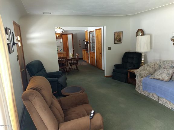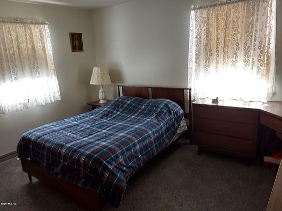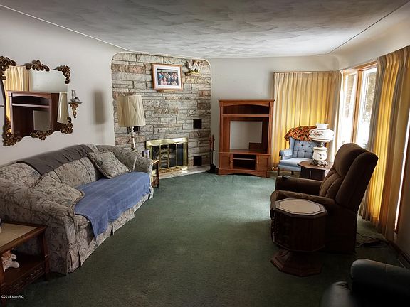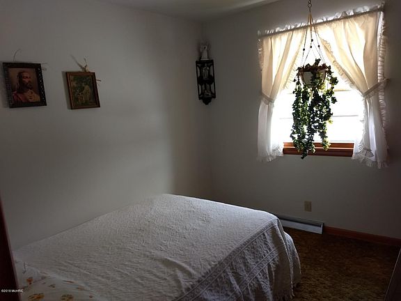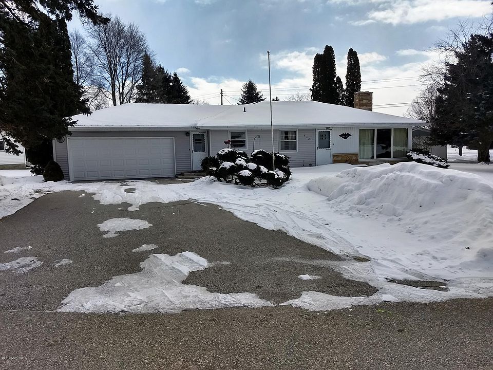 Ranch house in Village of Edmore within walking distance of central business district, restaurants, shops, etc. House has been thoroughly cleaned waiting for your updating if desired, full finished basement has huge recreation room and a bar! With egress windows installed, could easily add 2 or more bedrooms. Seller states that main floor has hardwood floors throughout, but has been carpeted since house was built! Access ramp in garage can be removed if not needed. New exterior door in garage for back entry door ready for installing when weather warms!