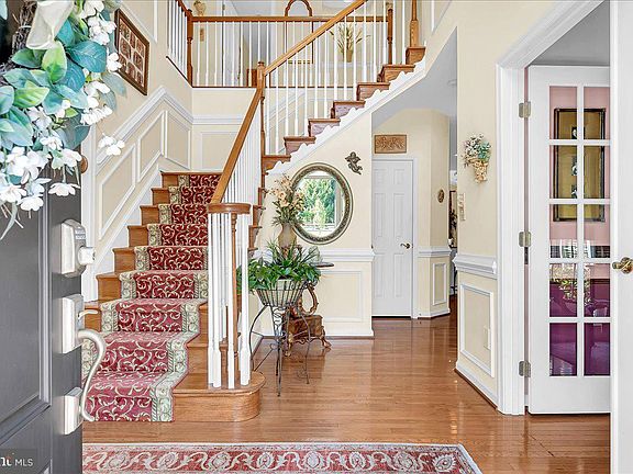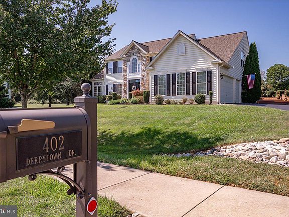 Welcome to 402 Derrytown Drive - an exquisite 4 bedroom, 2.5 bath home in the desirable neighborhood of Antrim. It won't take long to notice how the home has been lovingly maintained by it's original owners for over 20 years. The enhanced curb appeal begins with a newly resurfaced oversized driveway to the stone entrance and newer front door with glass panels and side light glass windows. Enter into a two story foyer with custom shadow boxing and side rail wood finishing. To the right, behind glass panel french doors, is a library/office area with a built-in wall of wood cabinetry - perfect for anyone working from home. To the left is the formal living room and dining room areas as well as an additional 13x19 ft bright and airy sunroom/solarium with tile flooring. The rest of the main floor living space offers mostly hardwood flooring. As you continue straight through the foyer you will be lead to the open concept kitchen, family room and breakfast room with a wall of windows show casing the exterior of the home. The kitchen has white cabinetry, granite counter tops, a tile back splash, stainless appliances, double ovens, pantry and center island. Enjoy the ambiance and coziness coming from the stone front, natural gas fireplace in the family room. There is a door from the kitchen breakfast room leading to an incredible, multi-leveled, 1700 sq ft custom Trek and EP Henry deck. No expenses were spared on this outside area of the home - with low voltage lighting, exterior speaker system, a 6x12 electronically controlled patio awning, trex bar and custom landscaping makes this the perfect space for outdoor entertaining. And if this isn't enough, there is a private and peaceful oversized rear yard with a pristine lawn that provides the perfect canvas for any additional projects the new owner may have in mind. Upstairs, the primary bedroom with tray ceiling offers two walk in closets, a sitting area and luxurious en-suite complete with a stand up shower, soaking tub, double sinks with extra cabinetry and private toilet area. The three additional bedrooms share a hallway full bathroom with tub/shower combo. The full, unfinished basement with egress window and which has been plumbed for a bathroom, allows for much storage space or can eventually be finished and add an approximate 2000 additional square feet of living space to the home. There has been over $160,000 in renovations/upgrades made since ownership - some of which include a new roof (2024), neutral paint, upgraded lighting and fans throughout, custom window treatments, full home water filtration and purification system...... (See full list of improvements supplied in the MLS). Convenient location to shopping, major highways and schools. A truly move-in ready home. Don't miss the opportunity to make this elegant property your new home.